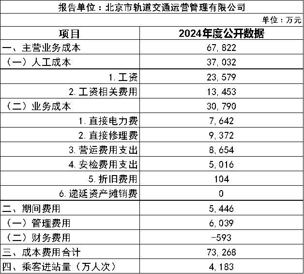 注:成本公开数据为北京市轨道交通运营管理有限公司2024年度运营的地铁线路-燕房线和19号线的运营成本支出。